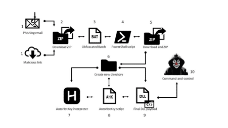 - AutoHotKey interpreter with a customized script to perform some malicious tasks; and