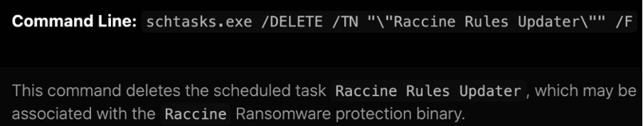 Figure 9: BackByte tries to remove the Raccine task during its execution.