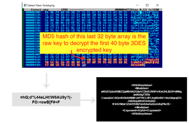 Within the context of the BlackByte ransomware, the experts from Trustwave explained the downloaded png with the AES encryption key is used in both the encryption and decryption process (see Figure 10). As the same file was used to compromise different organizations worldwide, Trustwave uses that key to create a decryptor that can recover the victim's files for free.