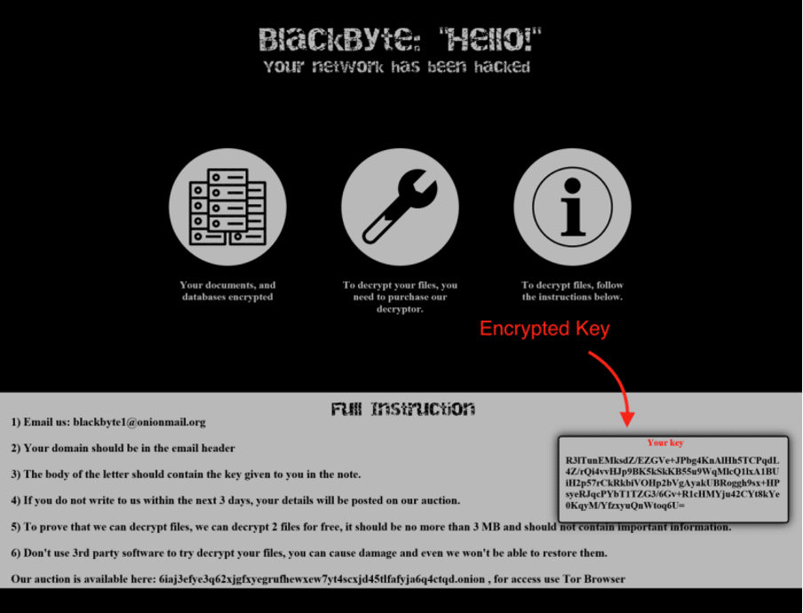 BlackByte has been a data encryption malware targeting organizations in the wild since July 2021. As mentioned by redcanary experts, the authors behind the ransomware have exploited ProxyShell vulnerabilities present on Microsoft Exchange servers to gain internal access via CVE-2021-34473, CVE-2021-34523 and CVE-2021-31207.