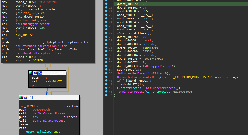 With this technique in place, the malware can register its real payload in a custom exception filter and make its analysis hard.