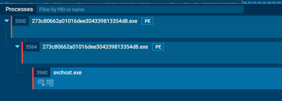 After that, a new process called "svchost.exe" is initiated in a suspended state, and the parent process is injected into the new one using the APC Injection technique.