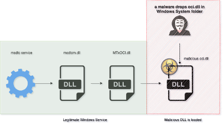 If the oci.dll malware exists, then the legitimate service can load the malicious DLL using the DLL export table maintained by the criminals.