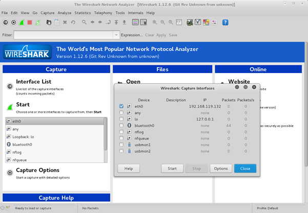 In this test setup, we will use Wireshark to capture our data.