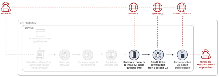 In addition, the backdoor is also capable of delivering second-stage payloads, which are part of the CobaltStrike software suite.