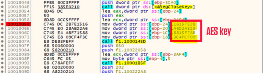 Figure 2: AES key hardcoded inside the malicious DLL.