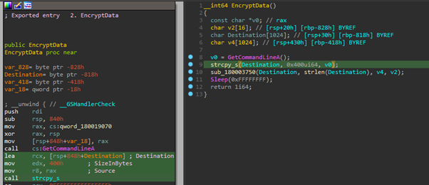 The encryption key can be passed using the option “-p” when the executable is started (0x53A4C60B).