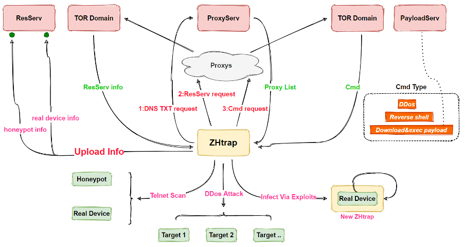 Figure 1: High-level diagram of ZHtrap botnet (source).