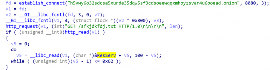 Finally, the malware communicates with the TOR Command and Control (C&C) server and waits for the execution of the issued commands.