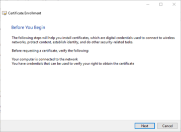 We will then be brought into the Certificate Enrollment wizard, which we can continue on with by clicking on 'Next'.