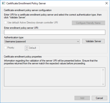 If on the other hand we click on 'Add New', we will be prompted to enter the location for the server we need to communicate with, along with a request for the type of authentication we will need to use for verification.