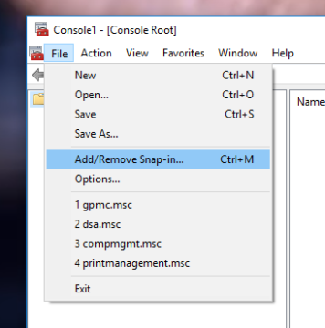 For anyone that has not used the MMC before, it is what powers various areas such as Computer Management- which is one of the most powerful utilities at our disposal in Windows. Once the empty shell has appeared, we will want to go up to the File dropdown menu and select 'Add/Remove Snap-in'.