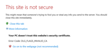 This will show us any certificates that have already been applied, including self-signed certificates. Self-signed certificates are generally not trusted by default on any systems other than the one that created it, and will generate an error upon navigating to them such as the one shown below.