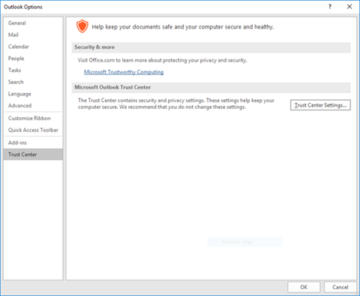 This can also be used when sending emails such as through Outlook. To add this signature to our emails, we will want to go up to File and select 'Options'. Once here, we will want to navigate to 'Trust Center' and click on the 'Trust Center Settings' button.