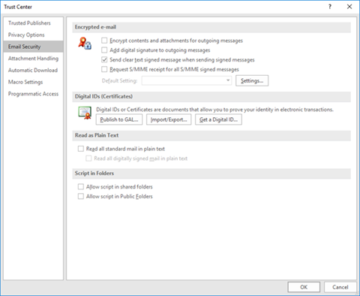 - https://support.microsoft.com/en-us/office/secure-messages-by-using-a-digital-signature-549ca2f1-a68f-4366-85fa-b3f4b5856fc6 - Secure Messages by using a digital Signature