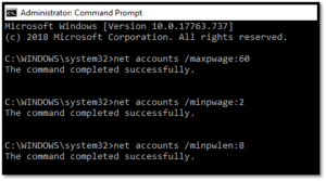 - Set minimum password length to 8 characters: net accounts /minpwlen:8