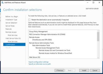 Final confirmation will be displayed, asking if you are certain that you wish to go through with the installation. If you are satisfied with what will be installed, click 'Install'. Post-install, you will want to reboot the system just to make sure that everything is good to go. When it comes back up again, Server Manager will have an attention flag to show you that something needs post-installation configuration- in this case, completion of DirectAccess setup.