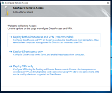 We are only going to be dealing with DirectAccess right now, so we can click on 'Deploy DirectAccess only'.