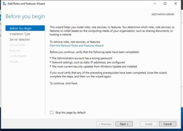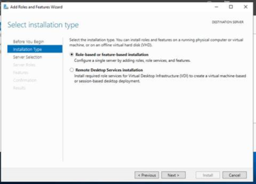 We are going to be doing a standard role/feature install here, so we can just click 'Next' to continue.