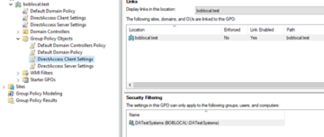 Once this is all set up, we can run a GPUpdate /force on our test system in this group, which will bring down the appropriate GPO settings. If we have configured everything properly, the next time the system reboots we will be using DirectAccess. There are a LOT of possible settings that can be adjusted to meet your environment's needs in DirectAccess, and reading Microsoft's official documentation located here is well worth your time. DirectAccess does have a high bar to entry, and is not for everyone that is certain. That being said, it has the potential to be well worth it if your organization needs something fast and completely supported from a single vendor from end to end.