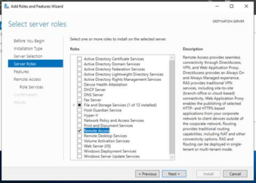 We are going to want to select the 'Remote Access' Server Role before clicking 'Next'.