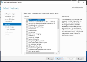 A screen displaying the prerequisites for installing this role will appear, such as management tools and IIS. Once you are satisfied with the additional options, click on 'Add Features' followed by 'Next'.