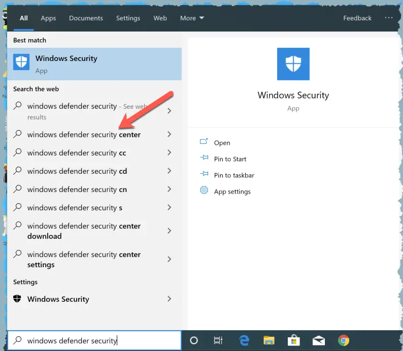 Select windows defender security center