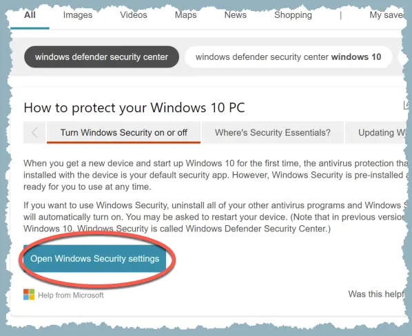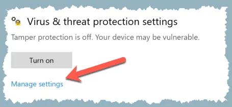 2 Under the “Turn Windows Security on or off” tab, select Open Windows Security settings.