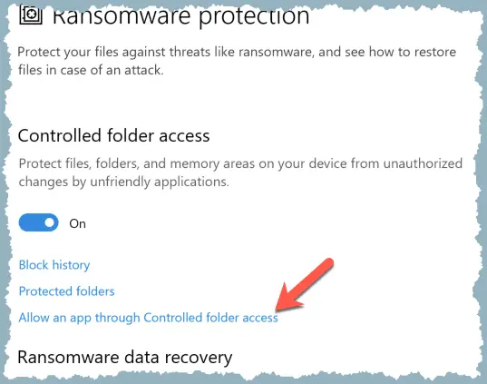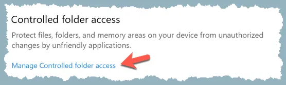 4 Select Manage Controlled folder access.