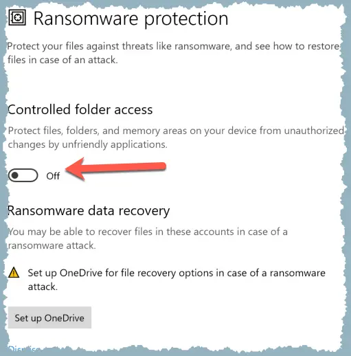 5 Turn on Controlled folder access. This brings up the window shown in Step 6.