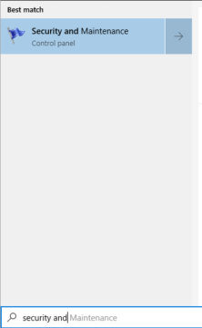 Action Center is very much a mobile or modern style take on making the user aware of things that are going on and that require their attention. If we want something more concise and to the point however, we may want to take a step back and go to something more in the classic style such as the Security & Maintenance app on the Control Panel. To access this, we will want to go to Start and just type in 'Security and Maintenance'.