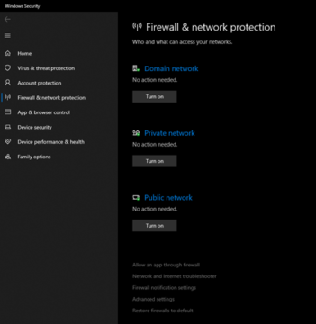 For example, if we wanted to see if we currently had any issues with Windows Firewall, such as if it was not active for a particular Network type, we could click on 'View in Windows Security' in order to open the app, and it will show the current status of Windows Firewall on Each Network type- Domain, Private and Public.