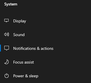 In order to get to the Notifications area, we will first want to click on the 'System' button, followed by 'Notifications & Actions.'