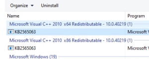 If the option is available for a specific update on this particular workstation, the options “Uninstall” or “Change” will become available at the top of the screen. Once the update has been uninstalled, we'll want to reboot the system for all appropriate changes to take effect.