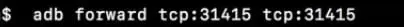 Step 3: Now we must connect the host system (Drozer Client) running on the PC too (Drozer Server/ Agent) running on the Android emulator. As we have seen the Drozer Agent is running on port 31415, we need to port forward to establish the communication between the Drozer Client and Agent, here is the command to do so.