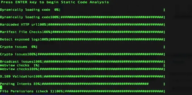 Step3: Press Enter to begin the static code analysis on the decompiled code, QARK will automatically look for the vulnerabilities as shown in the screenshot below.