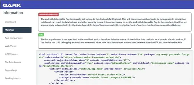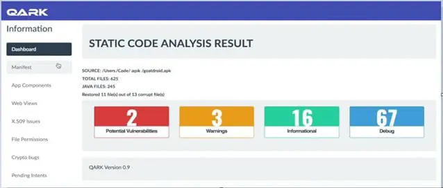 We will use Goat Droid a vulnerable Android application for the static analysis. We have seen the QARK installation above, continuing the same interactive shell of QARK we will analyze goatdroid.apk. We can analyze the compiled .apk or we can analyze through source code, here we will discuss the static analysis of the .apk file.