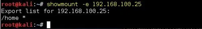 Step 3: Check if any share is available for mount, using showmount tool in Kali: