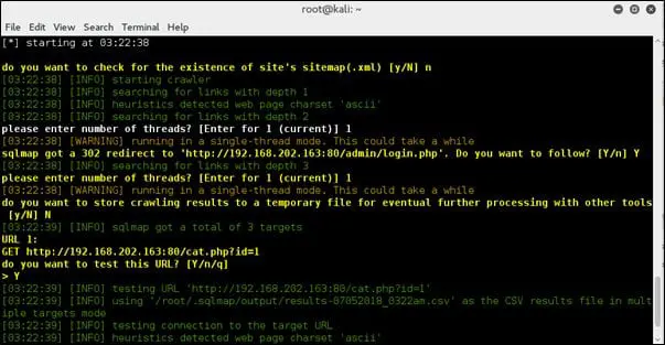 Crawl is an important option which allows the SQLMap tool to crawl the website, starting from the root location. The depth to crawl can be defined in the command.