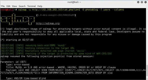 sqlmap -u http://192.168.202.163/admin/index.php?id=1 --user-agent=infosec