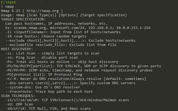 Figure 12: Nmap's help screen