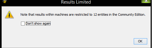 Figure 6: Maltego's pre-built machines restrict results to 12 entities in the free version