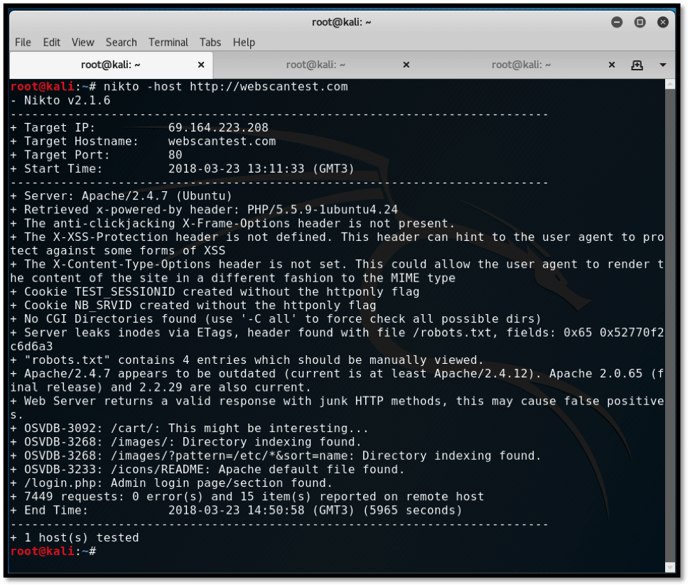 Scanning vulnerable websites with Nikto