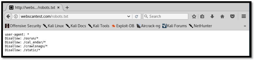 Directory indexing can be avoided by setting up appropriate permissions on files and directories within the web server. This can be done by disallowing search engine access to sensitive folders such that they are not found on the public internet as well as reviewing file and folder permissions within the web server to ensure access is restricted only to the required directories. The screenshot below shows the robots.txt entries that restrict search engines from being able to access the four directories. It should however be noted that this is not a permanent solution and file and folder permissions should be reviewed.