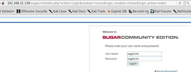 Password: sugarcrm