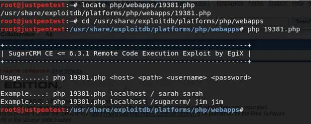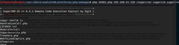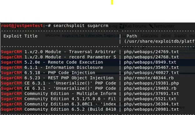 It will list all the SugarCRM-related exploits. As shown above, there are two exploits related to SugarCRM version 6.3.1, one in PHP and one in Ruby.