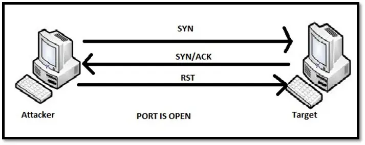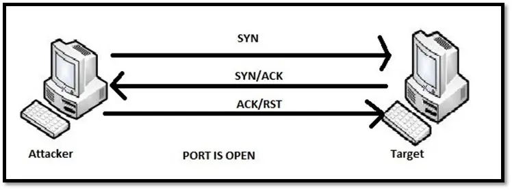 TCP SYN scan: SYN scan is also known as half-open scanning as it doesn't connect completely to the port. In this scan, the scanner sends a SYN packet to initiate a communication and wait for a response. The SYN-ACK packet from the target port indicates the port is listening i.e. open while an RST (reset) indicates the port is not listening i.e. closed.