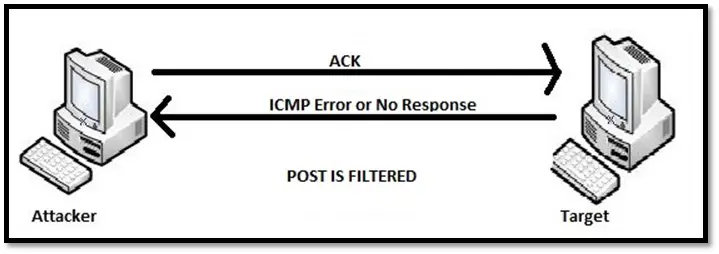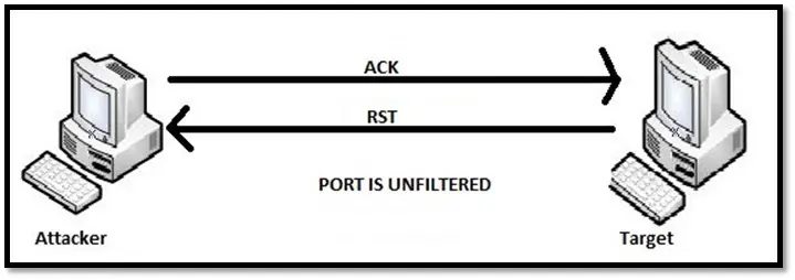 TCP ACK scan: ACK scan is different from other scans because this scan doesn't give the list of open or closed port instead it checks if the port is filtered or unfiltered. It sends the packet with ACK flag set. If in response it receives RST that means the port is unfiltered and might be open or closed. Ports that don't respond or send ICMP error marked as filtered. This type of scan is useful to detect the presence of a firewall.
