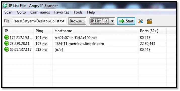 Angry IP Scanner: Angry IP Scanner is an open-source and cross-platform port scan tool. Angry IP scanner simply pings each IP address to check if it's alive, then optionally it is resolving its hostname, determines the MAC address, scans ports, etc. The amount of gathered data about each host can be extended with plugins. Scanning results can be saved to CSV, TXT, XML or IP-Port list files.