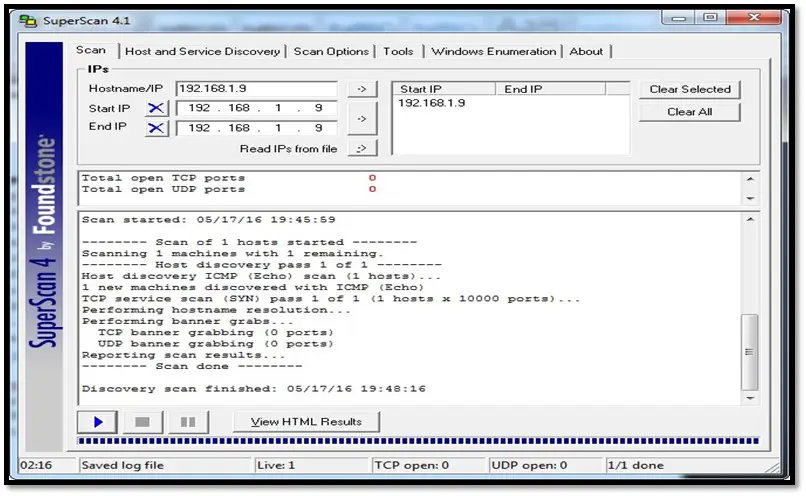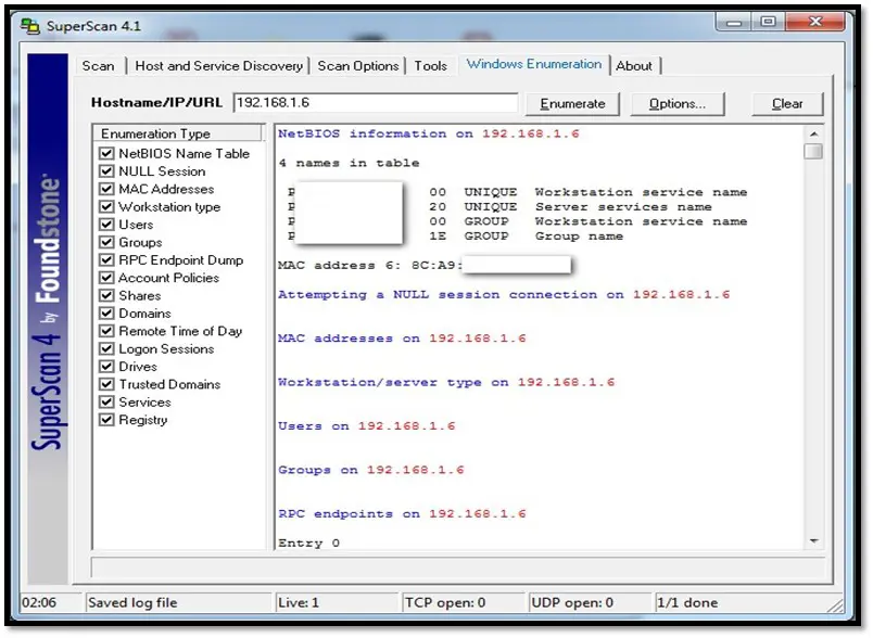 - SuperScan: SuperScan is a popular Windows based port scan tool by Foundstone. It includes a variety of additional networking tools such as ping, traceroute, HTTP HEAD, and whois. It features windows enumeration, which can list a variety of important information dealing with Microsoft Windows such as: